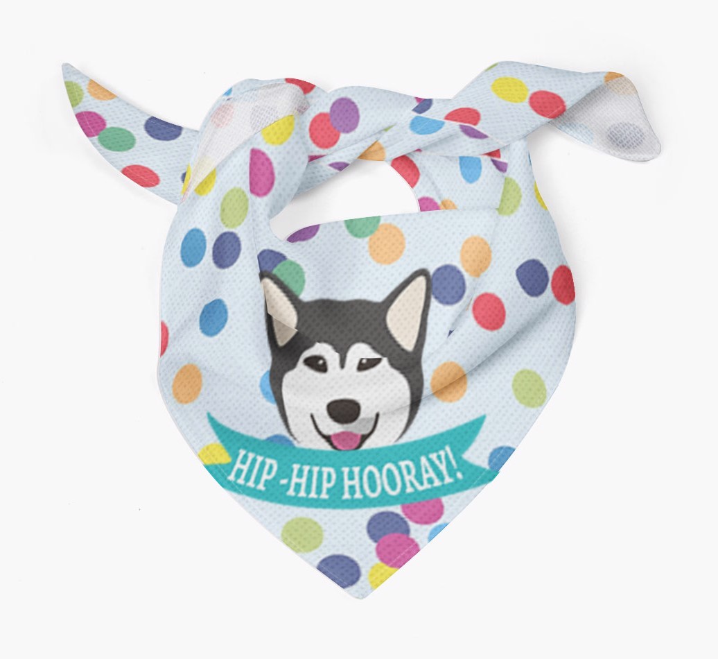 Featuring our famous Mally icon and the words ‘hip-hip hooray!’ printed upon a colorful confetti background, Your Malamute is sure to look pawty ready wearing this bandana.
