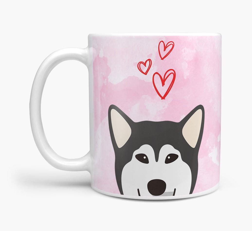 Peeking Dog & Hearts: Personalized Alaskan Malamute Mug