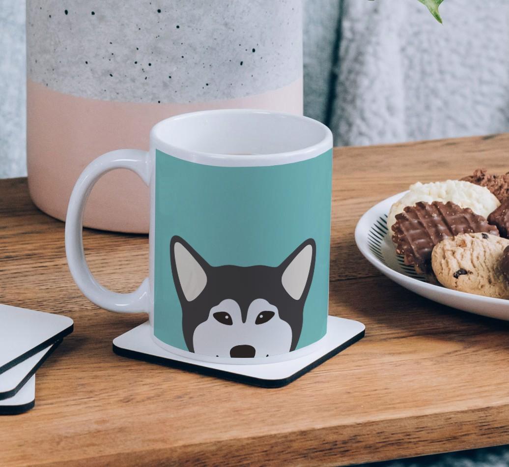 Enjoy the perfect coffee break with a mug that stars your furry friend! Featuring a Yappy.com exclusive Malamute peeking icon, this pawgeous mug will look at home in any dog lover's kitchen and we're pretty sure Alaskan Malamute will be a fan too.