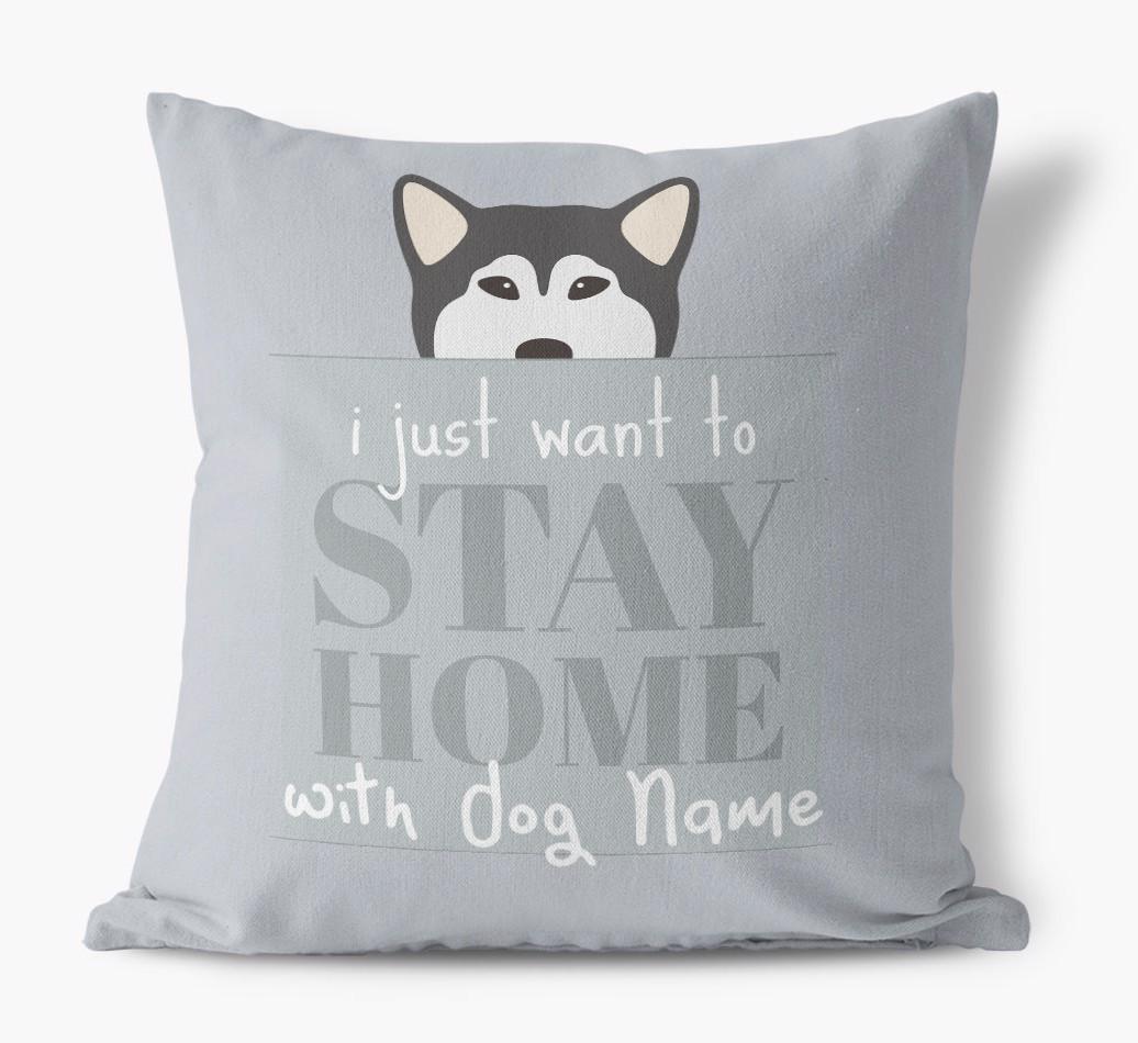 Stay Home: Personalized Alaskan Malamute Canvas Pillow