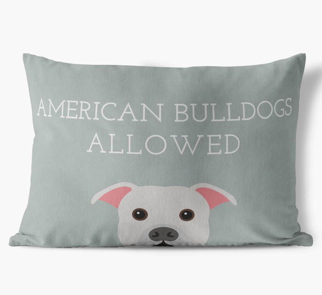 This exclusive, luxurious pillow is printed with the words ‘American Bulldogs Allowed’, which I’m sure Your American Bulldog would definitely approve of.