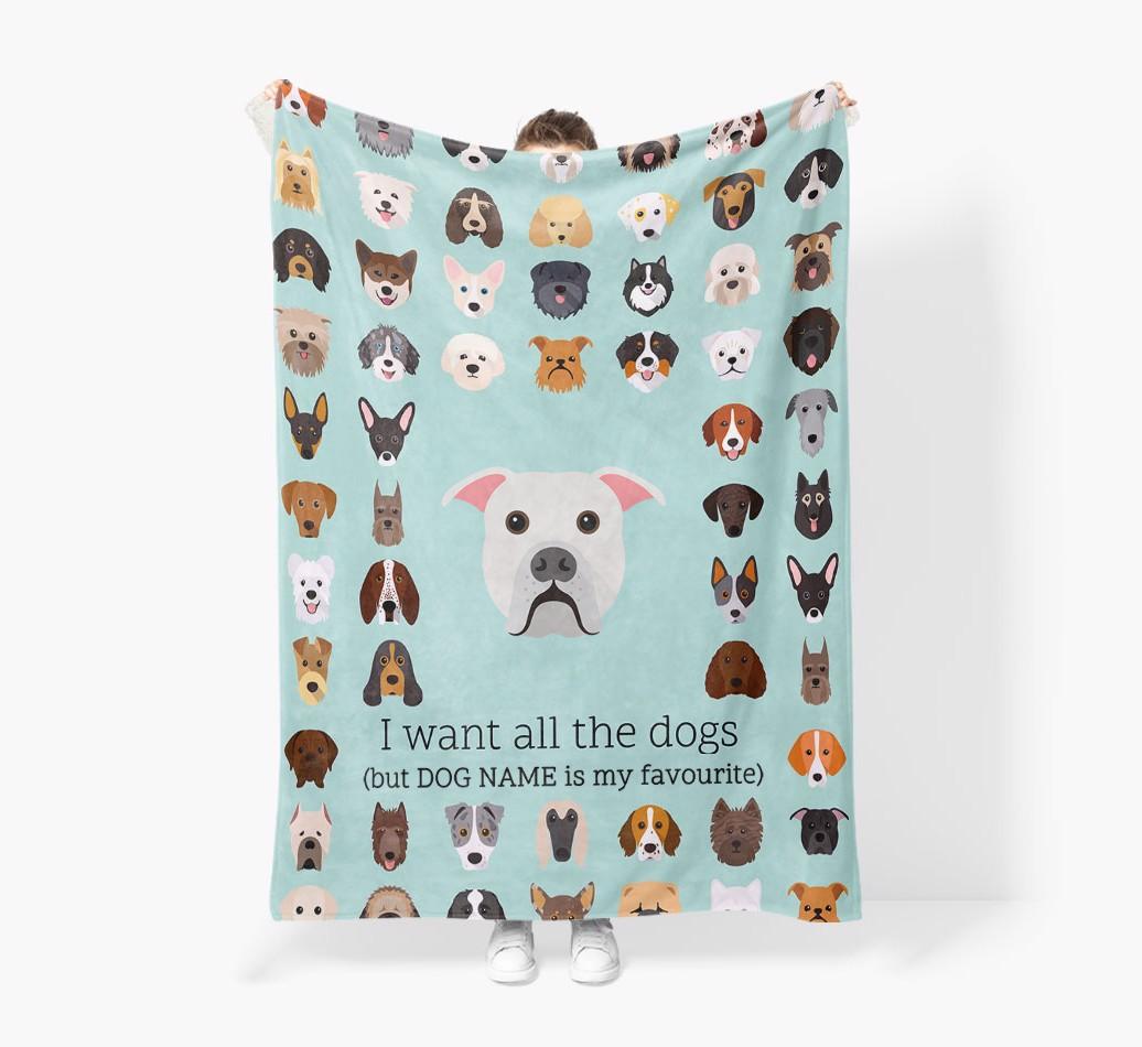 'All The Dogs' - Personalized American Bulldog Blanket: Premium Sherpa Fleece