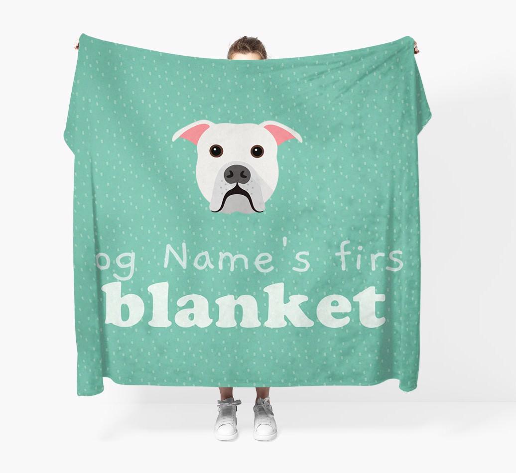 'Dog's First Blanket' - Personalized American Bulldog Throw Blanket