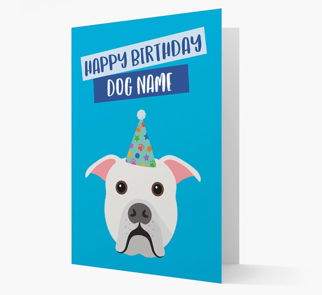 Why not wish Your American Bulldog Happy Birthday in true pawty style with this party hat birthday card.