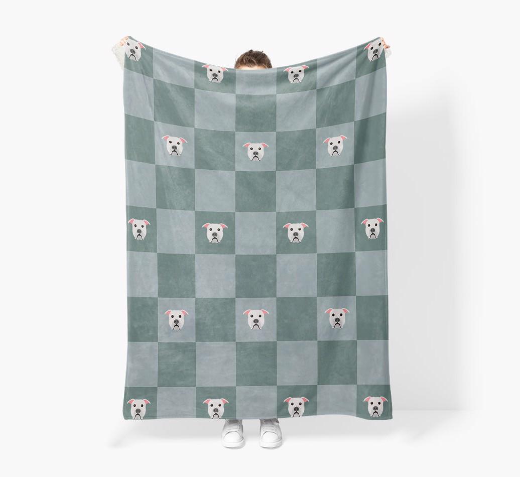 'Checkboard' - Personalized American Bulldog Blanket: Premium Sherpa Fleece
