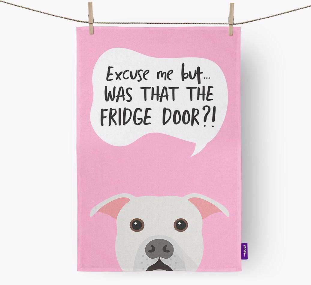 'Was That The Fridge Door?!' - Personalized American Bulldog Dish Towel
