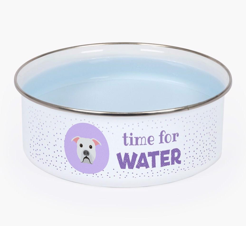Time For Water: Personalized Enamel American Bulldog Bowl