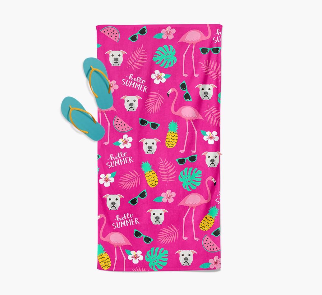 Flamingos & Dogs: Personalized American Bulldog Towel