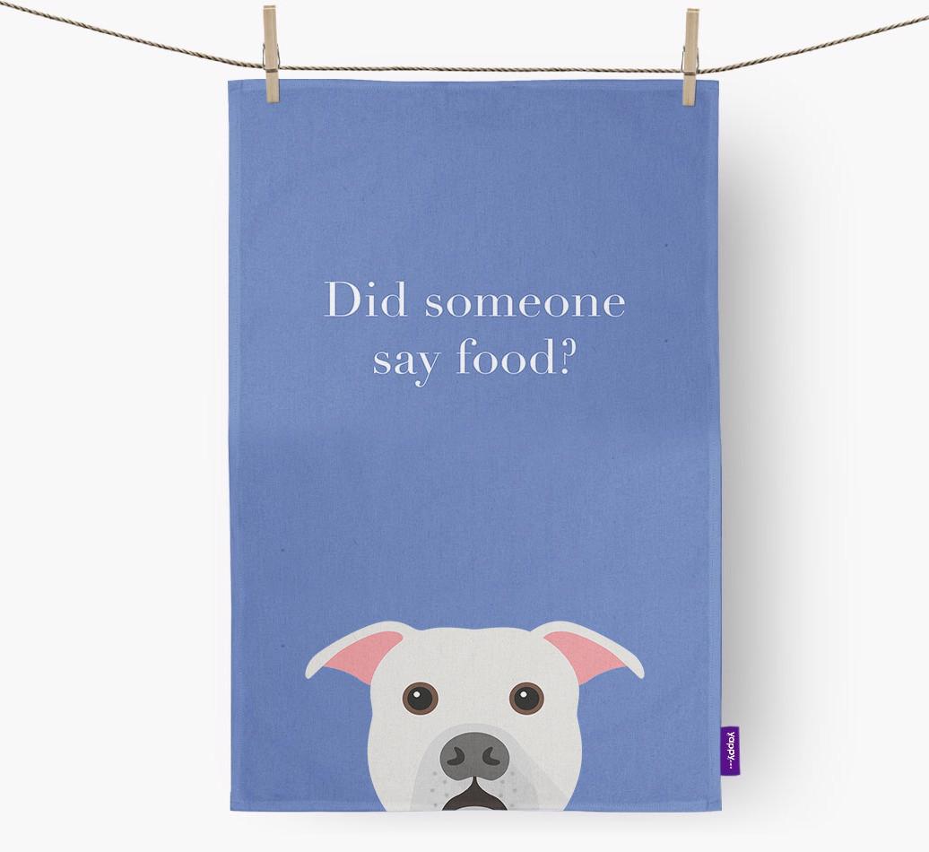 'Did Someone Say Food?' - Personalized American Bulldog Dish Towel