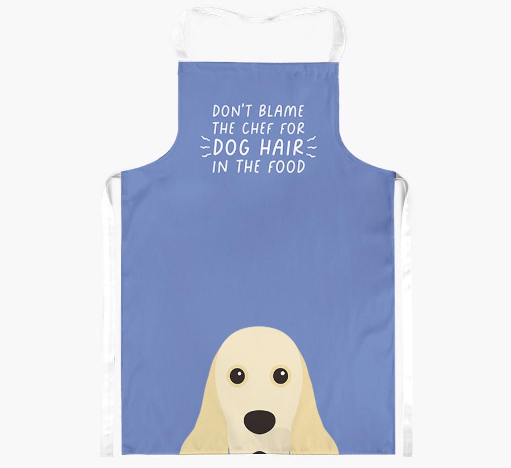 This funny apron will warn friends and family not to blame the chef for dog hairs in their food, they have American Cocker Spaniel to thank for that!