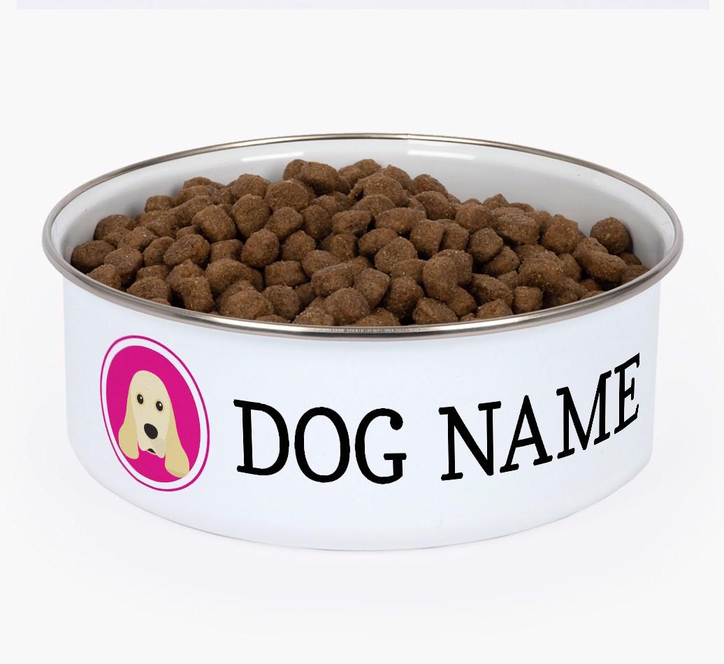 Name and Icon: Personalized Enamel American Cocker Spaniel Bowl