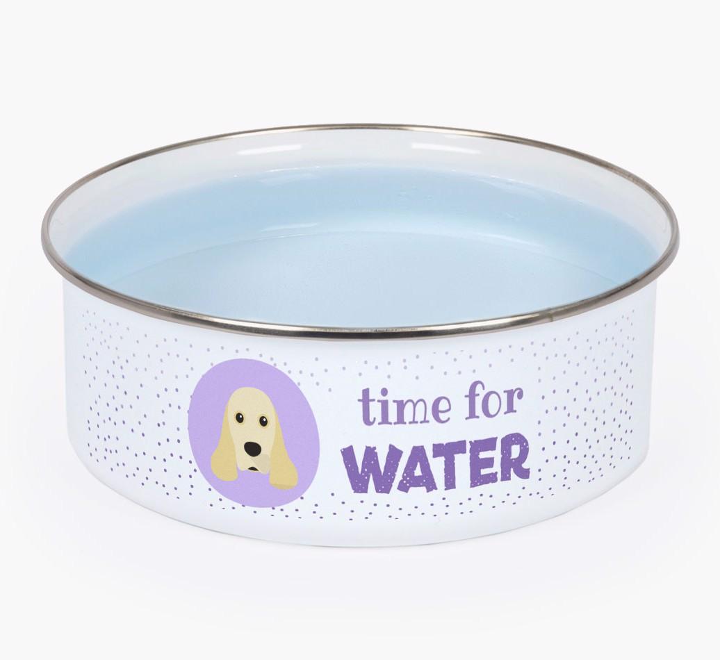Time For Water: Personalized Enamel American Cocker Spaniel Bowl
