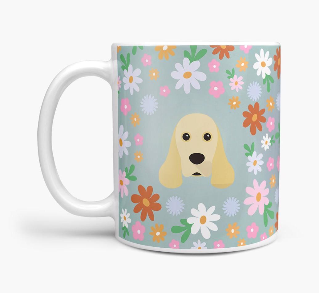 Featuring a colorful bunch of flowers, this mug is printed with the words 'woofly grandma' on one side of the mug and your Spaniel's cute icon on the other. Bloomin' lovely!