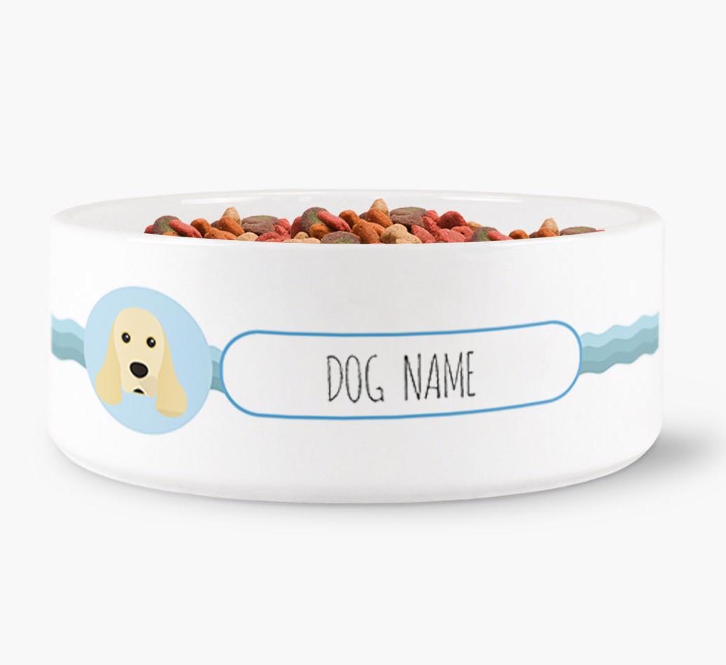 This cool water bowl features a design we think Your Cocker Spaniel will really lap up - especially as it’s personalized with their name and our famous American Cocker Spaniel icon.