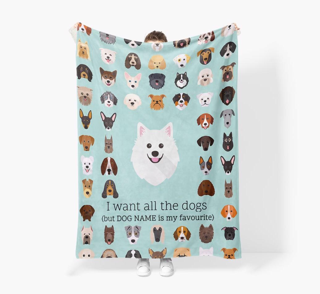 'All The Dogs' - Personalized American Eskimo Dog Blanket: Premium Sherpa Fleece