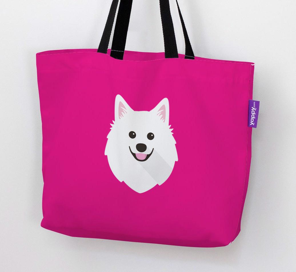 This Canvas Bag features an exclusive American Eskimo Dog icon printed on a bright, bold background.