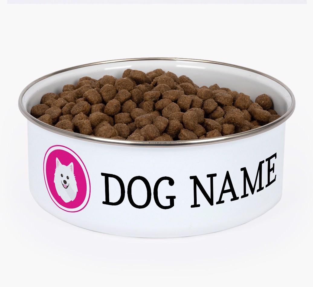 Name and Icon: Personalized Enamel American Eskimo Dog Bowl