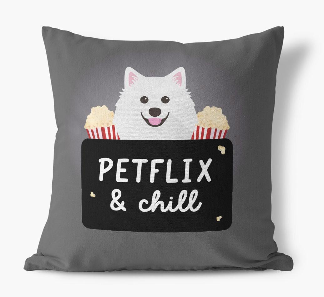 Petflix & Chill: Personalized American Eskimo Dog Canvas Pillow