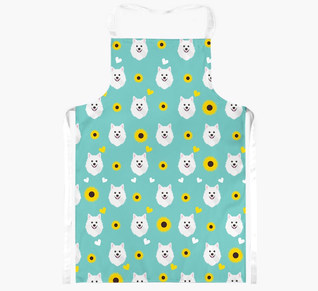 This apron has a delightful sunflower and heart pattern, and best of all - it's personalized with American Eskimo Dog's face too! This cute and colorful apron is sure to put a smile on every dog lover's face.