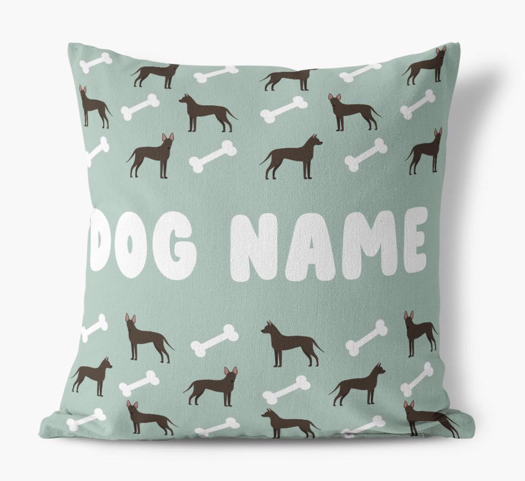 Personalized with American Hairless Terrier’s name against a background of Hairless icons and bones, this gorgeous pillow is full of pawsonality.