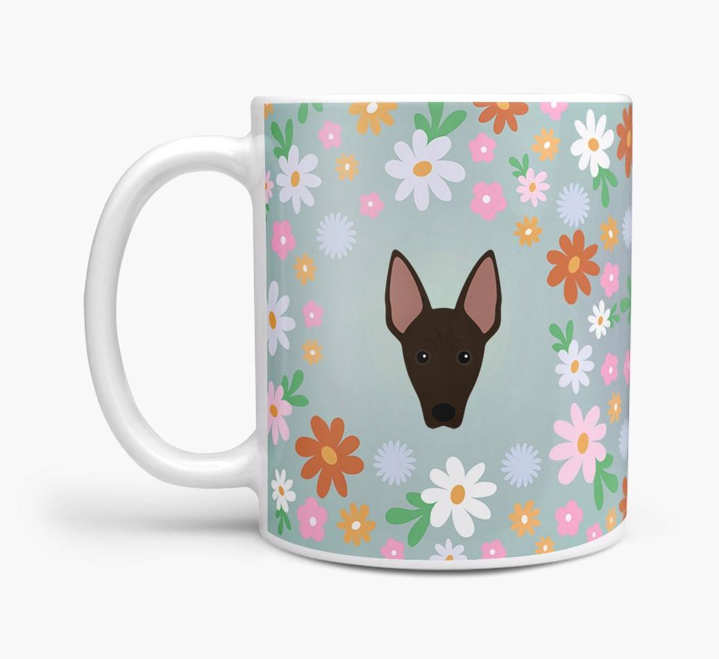 Featuring a colorful bunch of flowers, this mug is printed with the words 'woofly grandma' on one side of the mug and your Hairless's cute icon on the other. Bloomin' lovely!