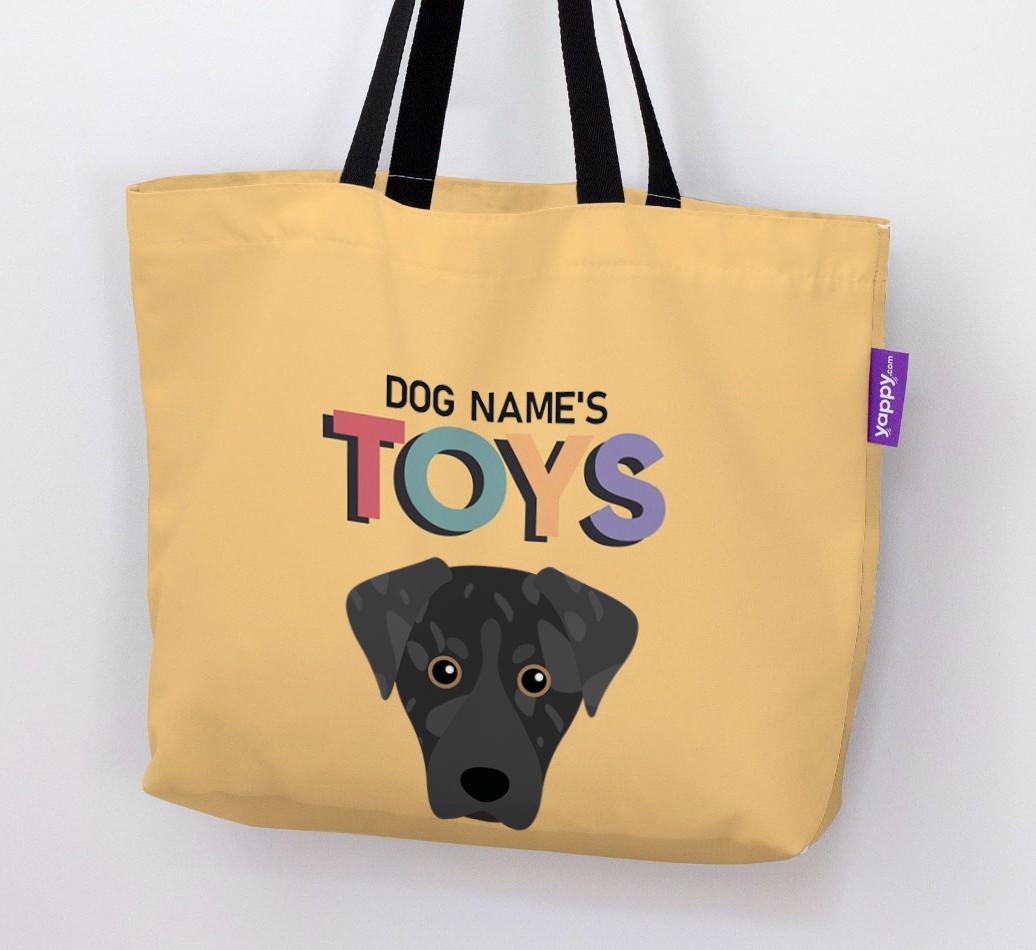 Don’t worry, we’ve got you covered with this pawsonalized canvas bag made for your American Leopard Hound’s toy collection!