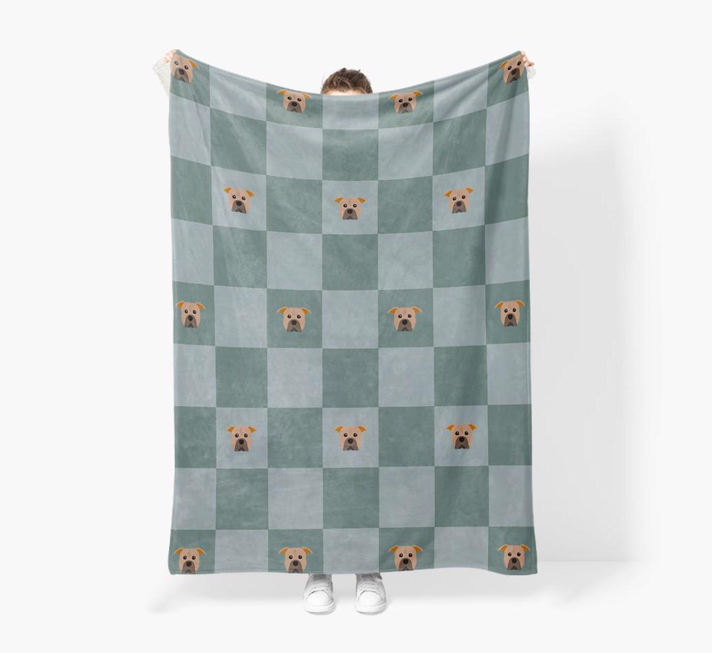 'Checkboard' - Personalized American Pit Bull Terrier Blanket: Premium Sherpa Fleece