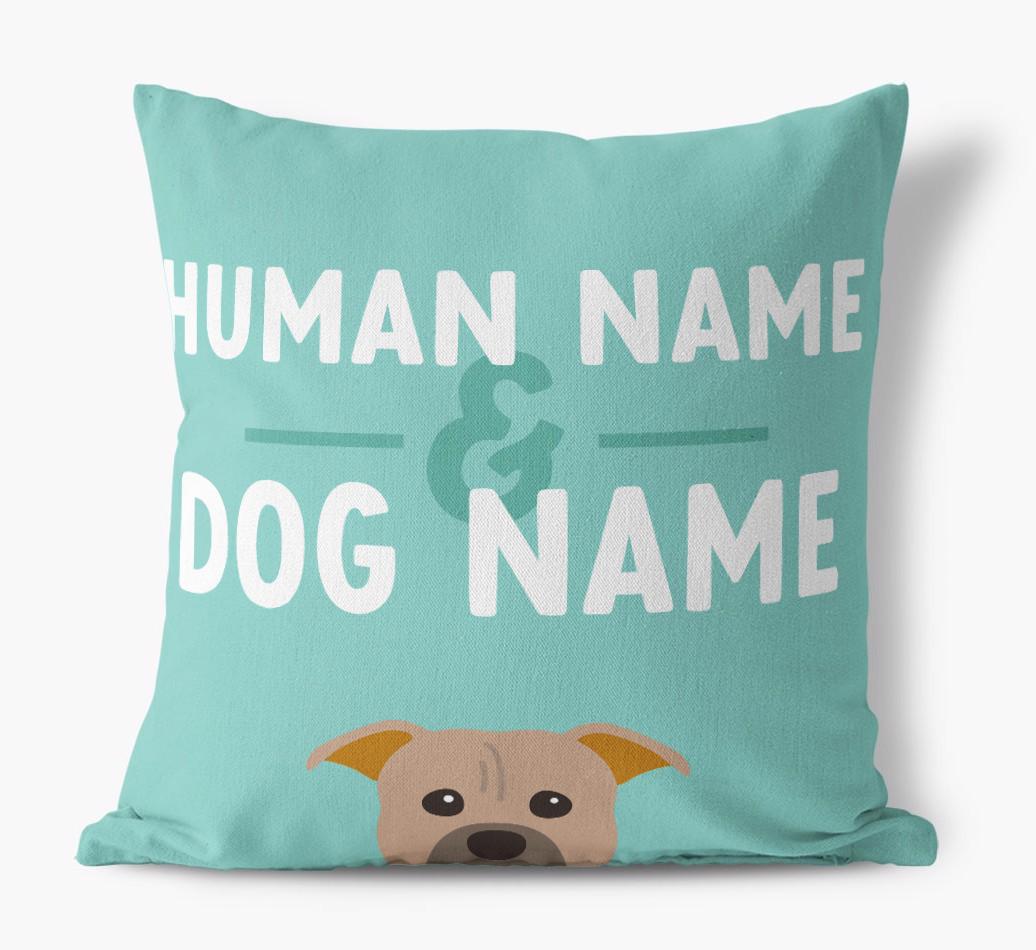 Human And Pet Name: Personalized American Pit Bull Terrier Canvas Pillow