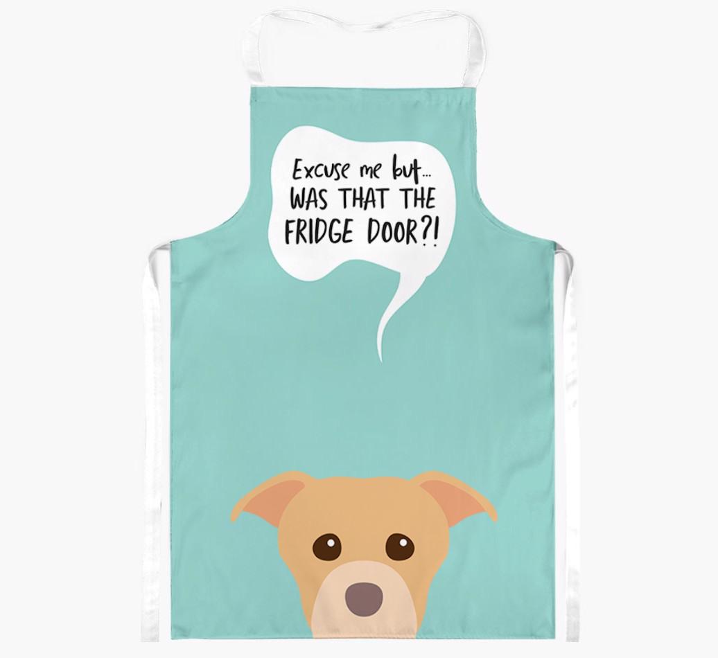 Featuring your hungry hound's cheeky icon and available in five eye-catching colors, this apron is a must-have for parents of greedy pups!