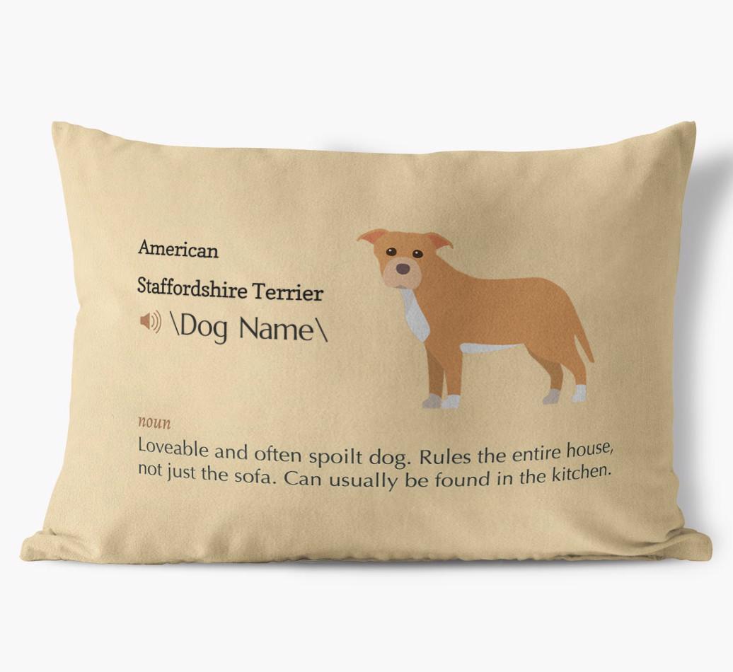 Personalized just for Your American Staffordshire Terrier and featuring a unique American Staffordshire Terrier definition and silhouette, this pillow truly is like no other.