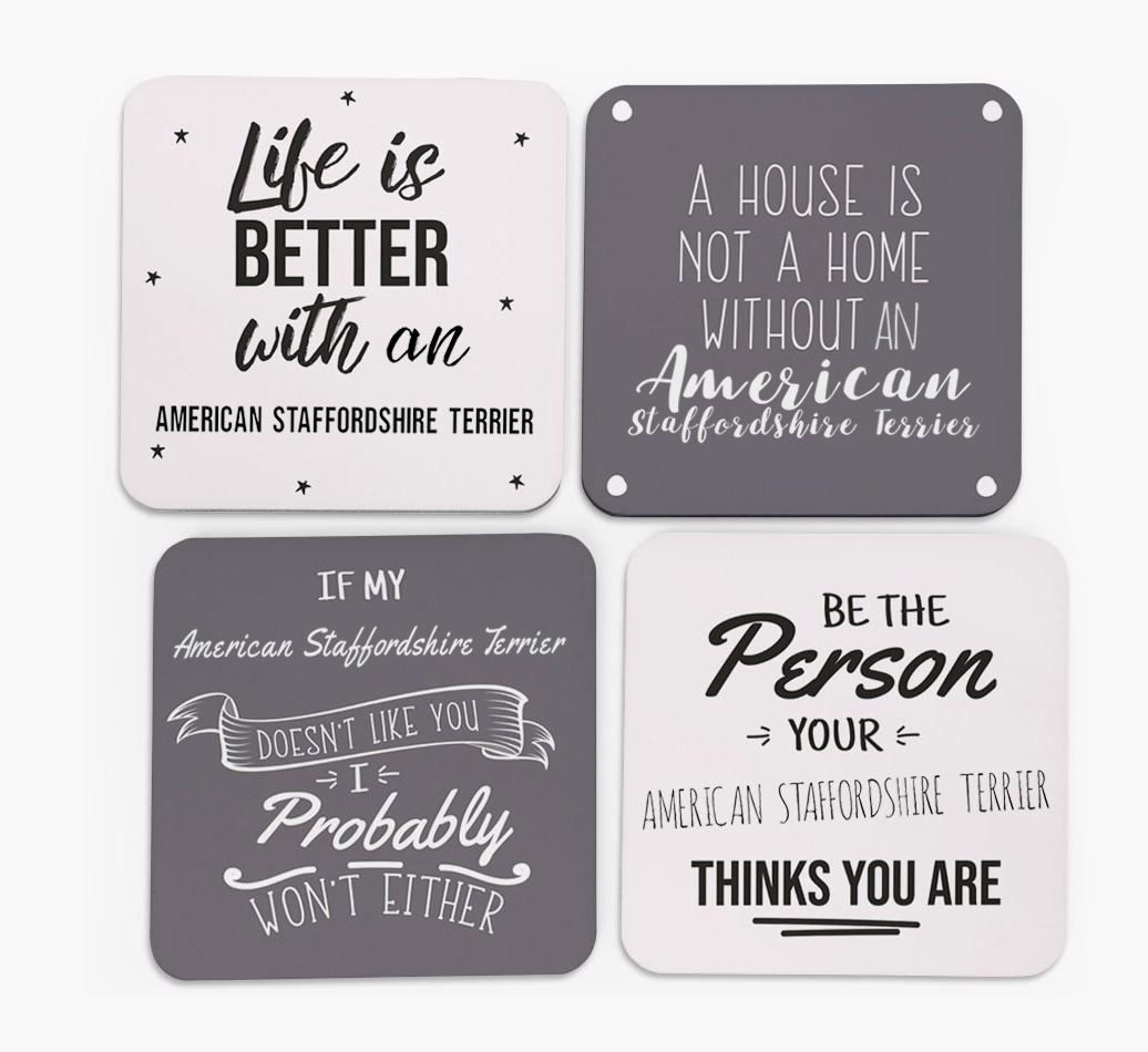 'Amstaff Quote' - Personalized American Staffordshire Terrier Coasters (Set of 4)