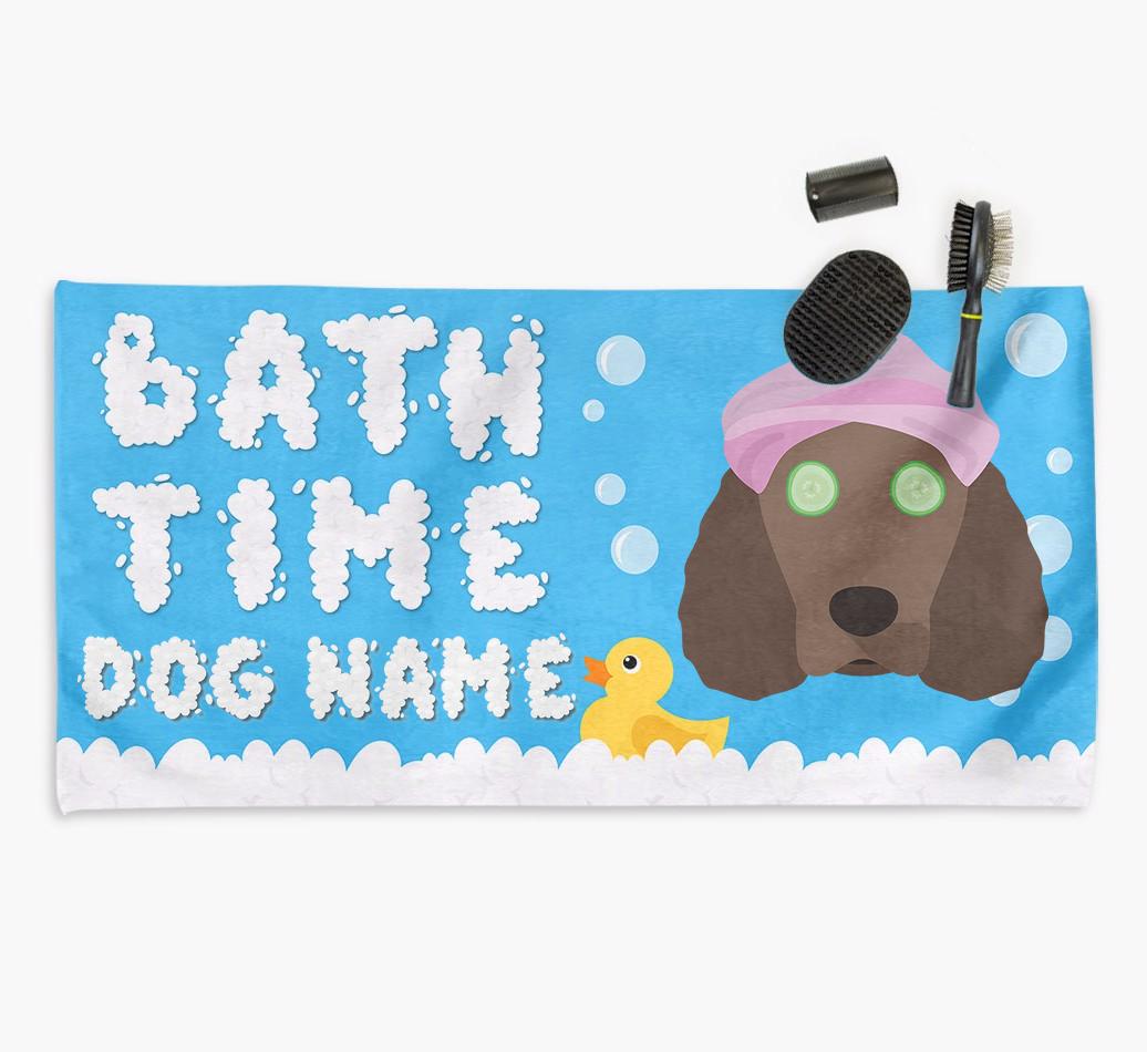 Bubble Bath Time: Personalized American Water Spaniel Towel