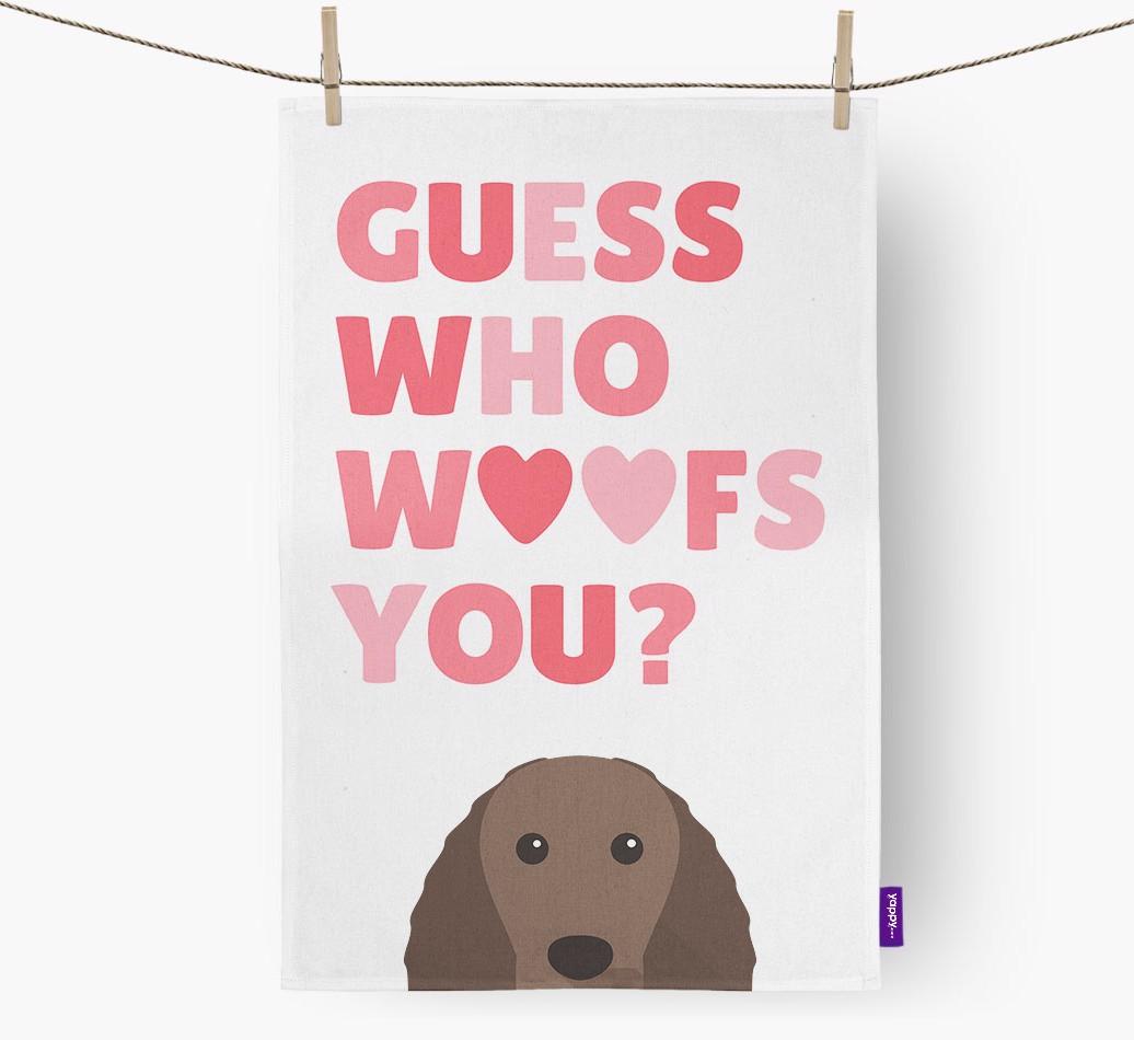 'Guess Who Woofs You?' - Personalized American Water Spaniel Dish Towel