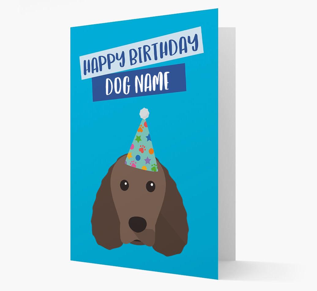 Why not wish Your Water Spaniel Happy Birthday in true pawty style with this party hat birthday card.