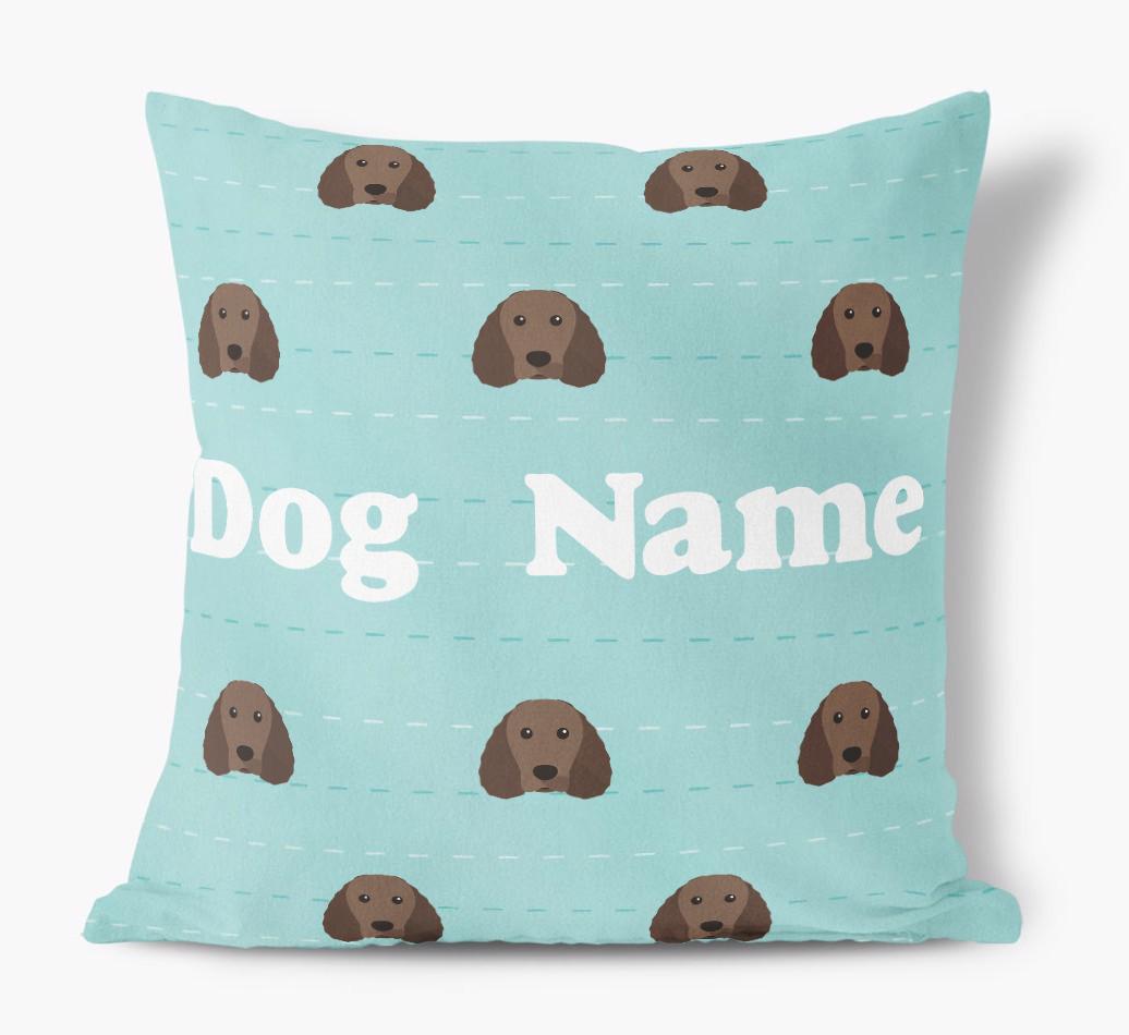 Featuring a furbulous Water Spaniel icon pattern, this pillow is available in six chic color-ways and is personalized with Your Water Spaniel's name.