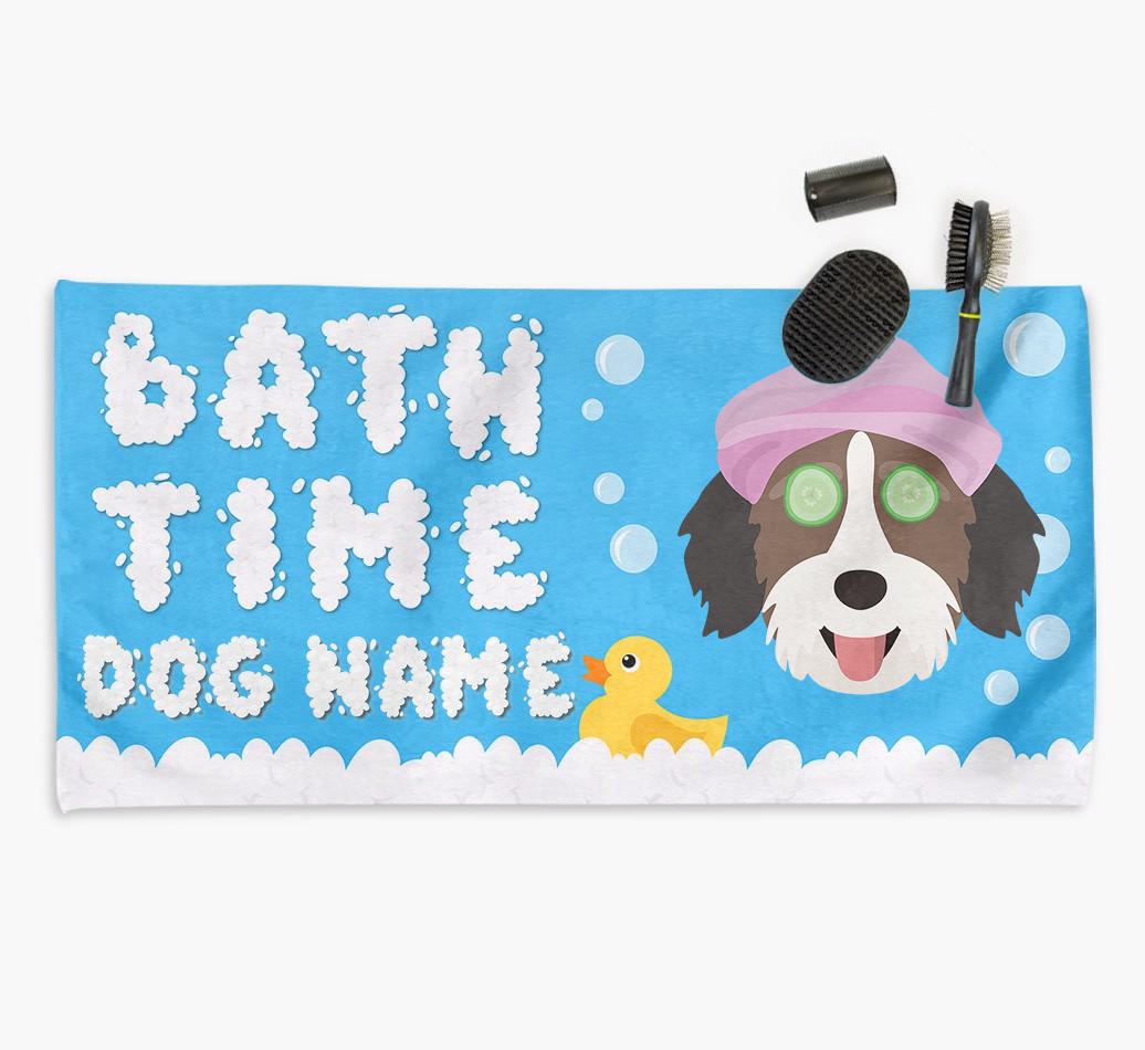 Bubble Bath Time: Personalized Aussiedoodle Towel