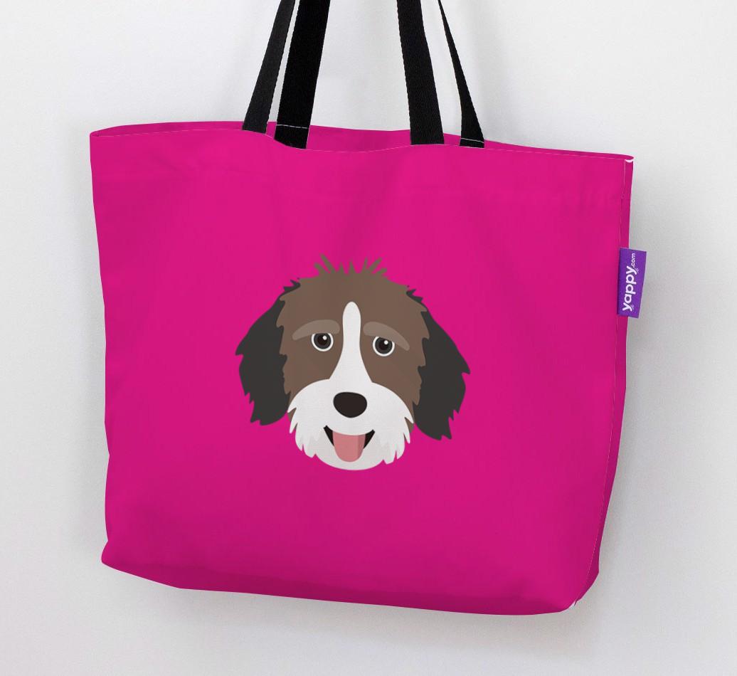 This Canvas Bag features an exclusive Aussiedoodle icon printed on a bright, bold background.