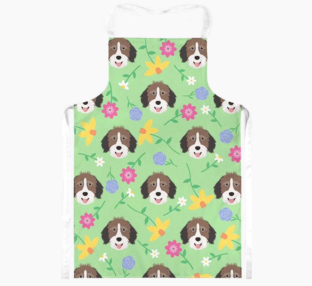 Featuring a gorgeous pattern of flowers and your dog's adorable face, this vibrant apron is bursting with canine charm and flowery fun - perfect for adding a splash of color to your kitchen.