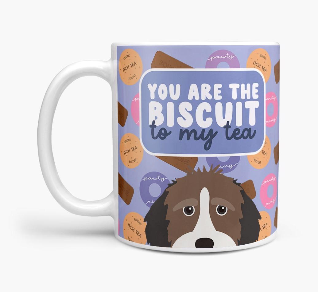 Featuring a cute biscuit motif paired with your Aussiepoo's adorable face, this mug is bound to be a firm favorite in every household.