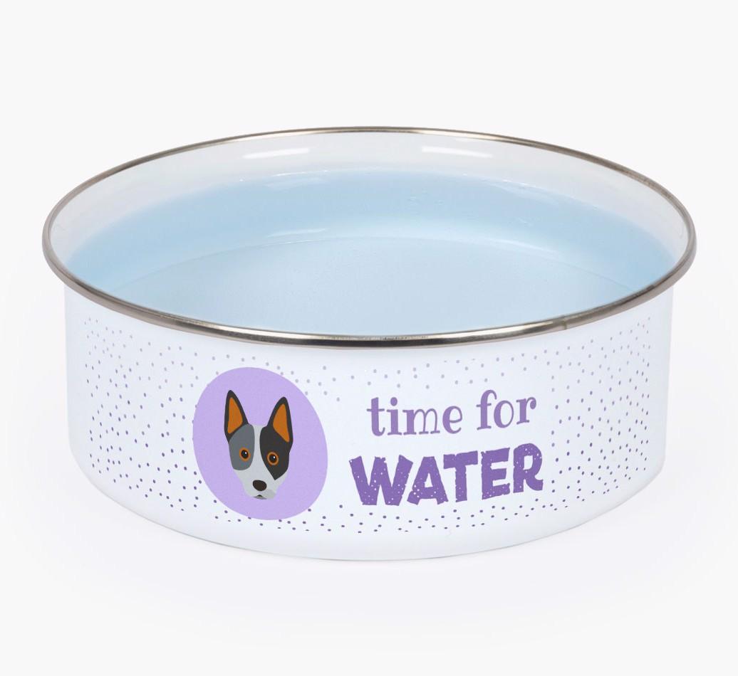 Time For Water: Personalized Enamel Australian Cattle Dog Bowl