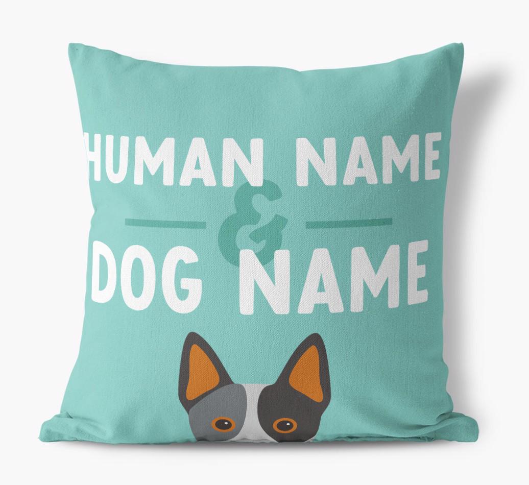 Human And Pet Name: Personalized Australian Cattle Dog Canvas Pillow