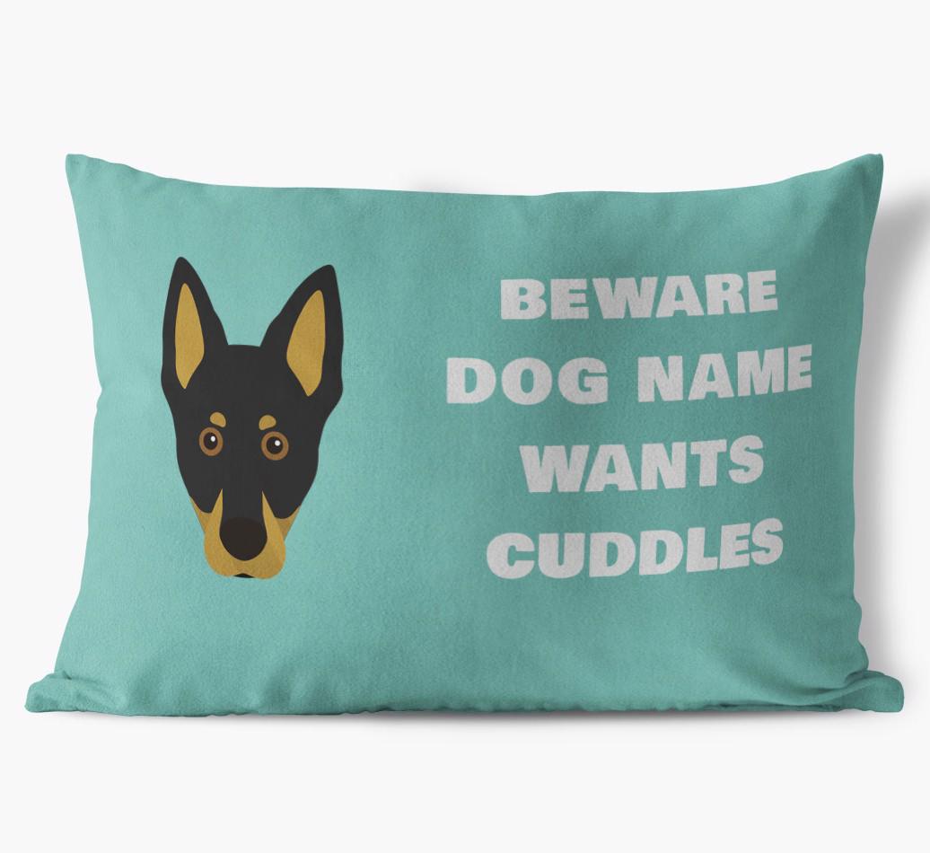 Beware of Cuddles: Personalized Australian Kelpie Soft Touch Pillow