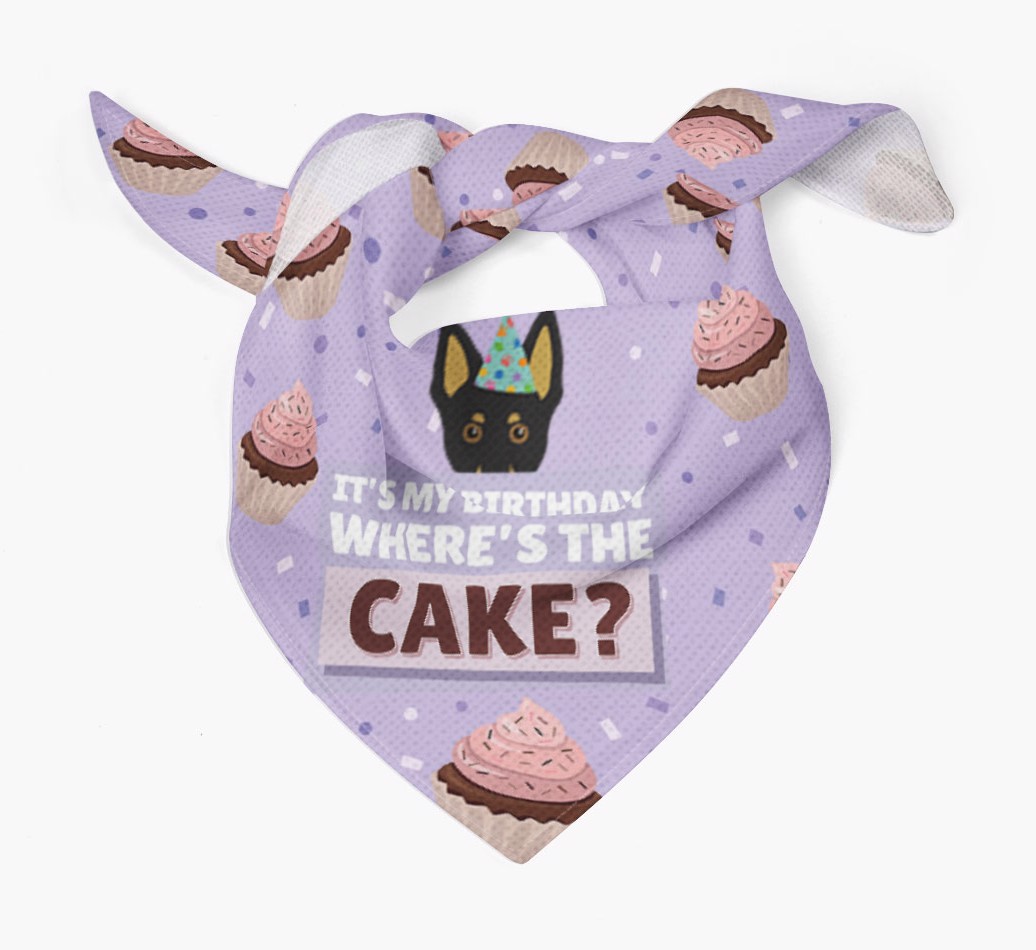 'Where's the Cake?' - Personalized Australian Kelpie Birthday Bandana