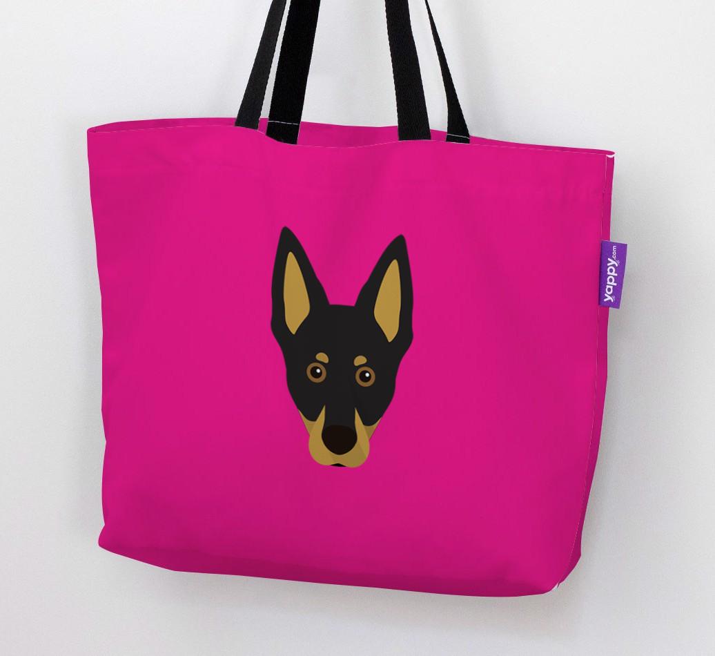 This Canvas Bag features an exclusive Australian Kelpie icon printed on a bright, bold background.