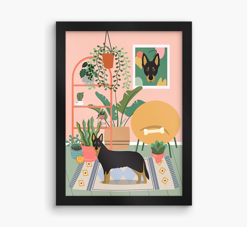 This contemporary piece of wall art pairs a chic living space with lovely pastel tones and a jungle of houseplants. Complete with the one that makes your house a home - Australian Kelpie! - this print is a wonderful way to display your love for your pooch.
