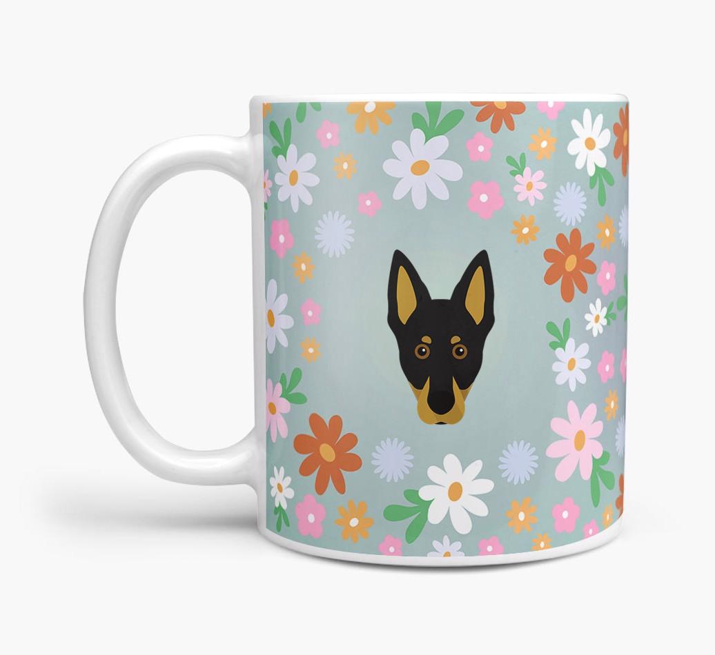 Featuring a colorful bunch of flowers, this mug is printed with the words 'woofly grandma' on one side of the mug and your Kelpie's cute icon on the other. Bloomin' lovely!