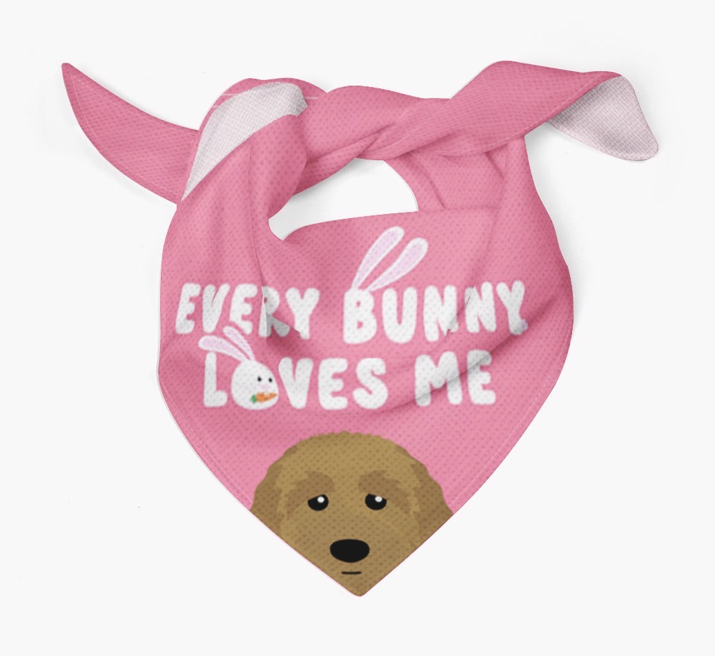 Tailored with the fabulous saying: 'Every Bunny Loves Me', this bandana is the perfect addition to your Australian Labradoodle's wardrobe! Available in four egg-ceptional colors and personalized with your Australian Labradoodle's icon, this is the perfect pawchase for Easter!