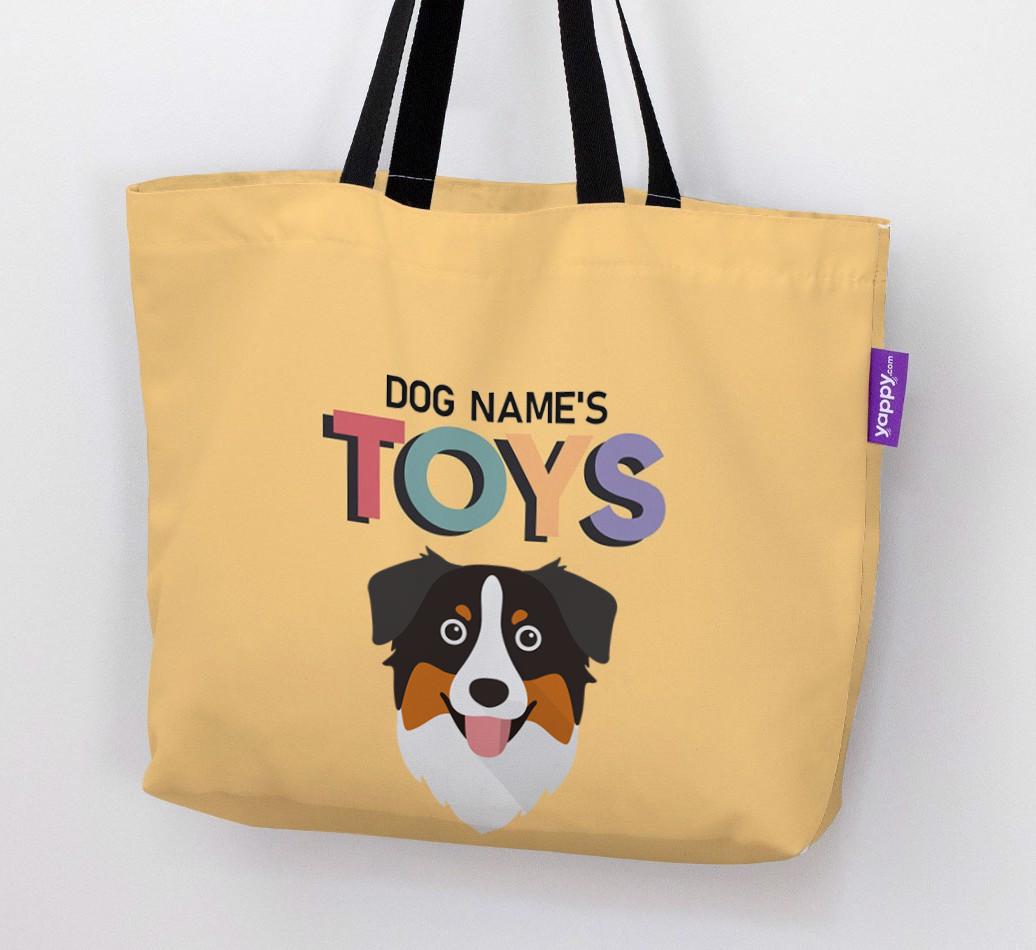 Don’t worry, we’ve got you covered with this pawsonalized canvas bag made for your Australian Shepherd’s toy collection!
