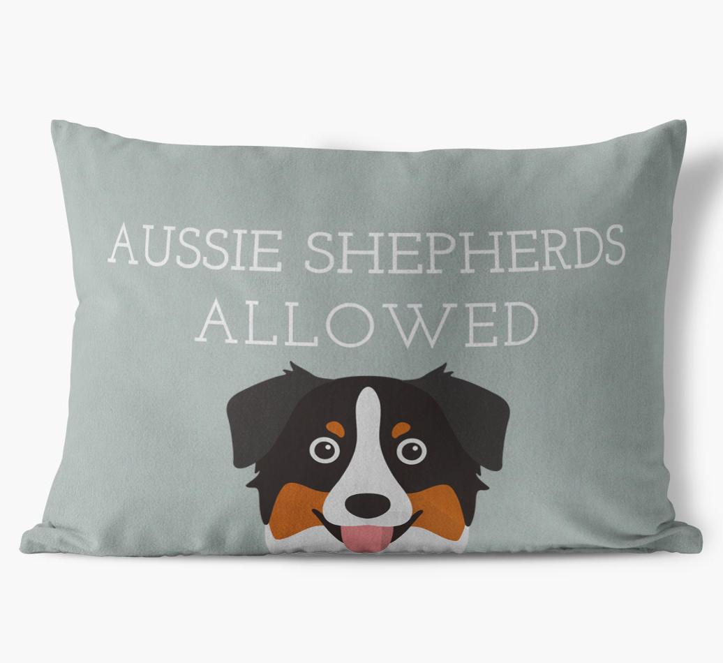 This exclusive, luxurious pillow is printed with the words ‘Aussie Shepherds Allowed’, which I’m sure Your Aussie Shepherd would definitely approve of.