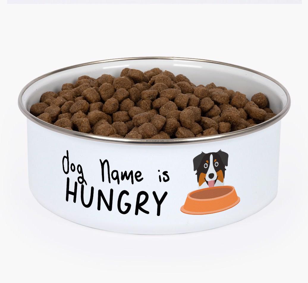 Hungry/Full: Personalised Enamel Australian Shepherd Bowl